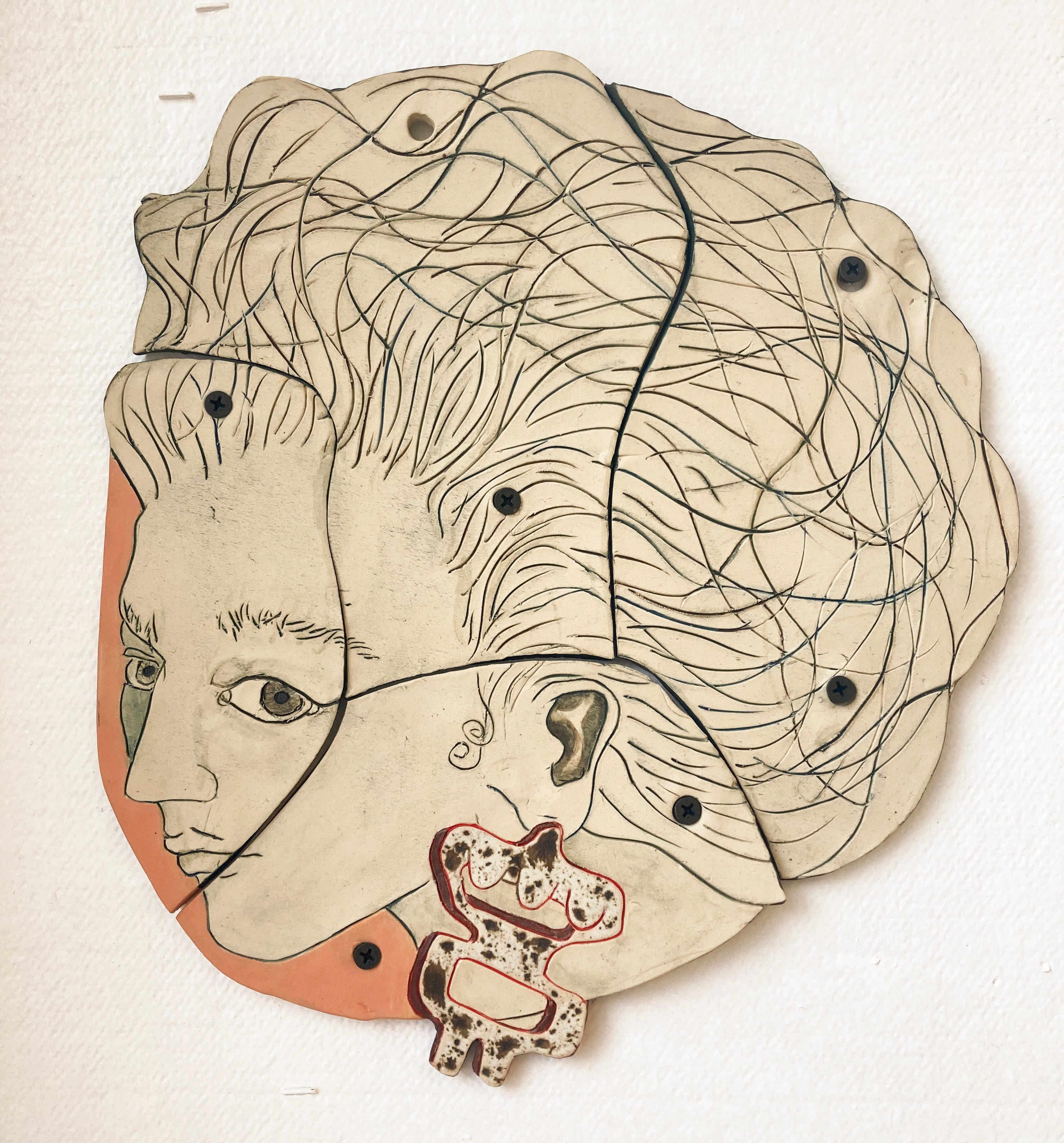 She also made some smaller ceramics portraits of what she calls ‘worried mothers’, inspired by Pompei faces as much as by her friends who are sending her selfies of them as they really are, not as they want to be seen.