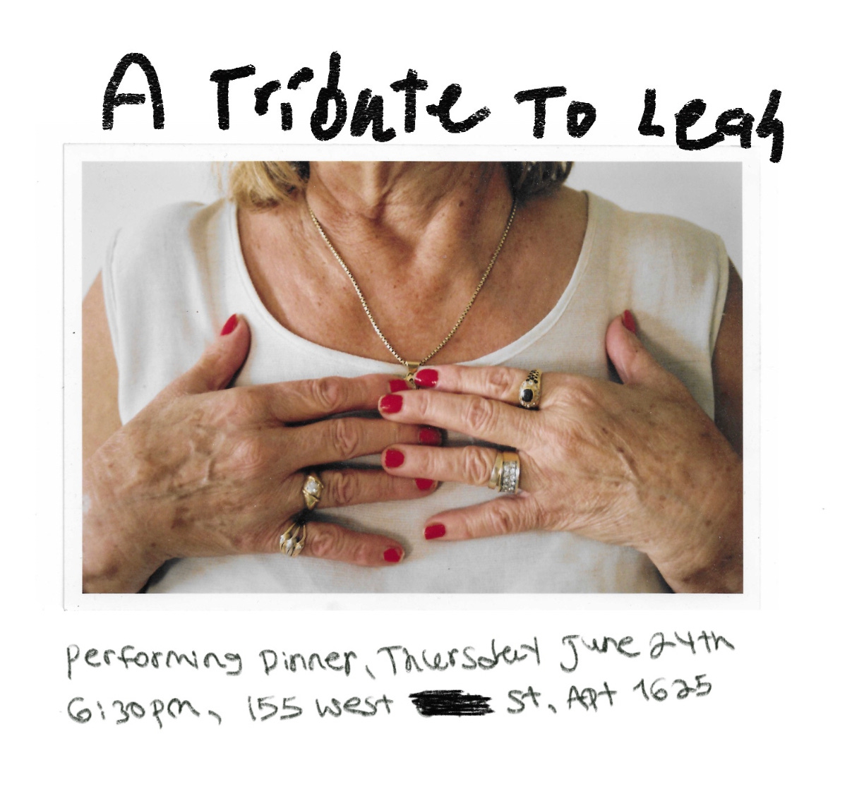 I especially love how her art involves you in a gentle way. In her Tribute to Leah, Maya said “Leah […] would always wear red nail polish, half peeled off from all the labor around the kitchen.” so she painted each guests’ nails in red. Maya had also written a beautiful personal text to pay homage to her grandma, which she read aloud. And all the guests participated by reading aloud a word or a sentence she had attributed to us, creating a patchwork of voices. By doing so- in such a simple way- we all shared a bit of her grief.